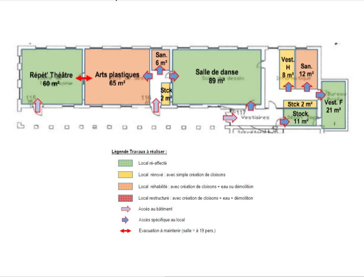 Dans le cadre d’un schéma directeur réalisé par Viapolis, il est prévu d’implanter en priorité les usages considérés comme urgent par la commune, notamment les activités des ateliers culturels municipaux : danse, arts plastiques, théâtre.
