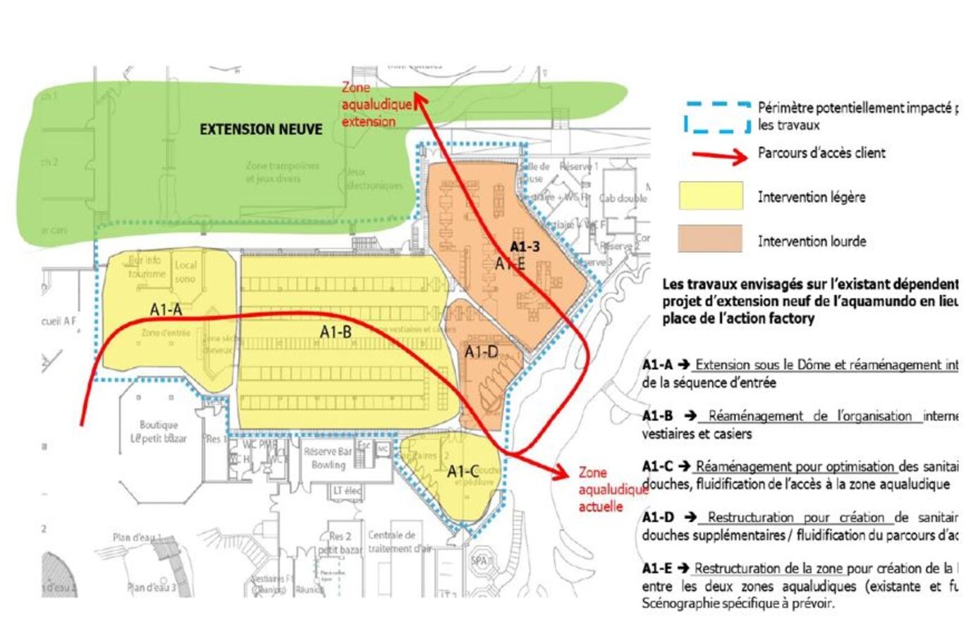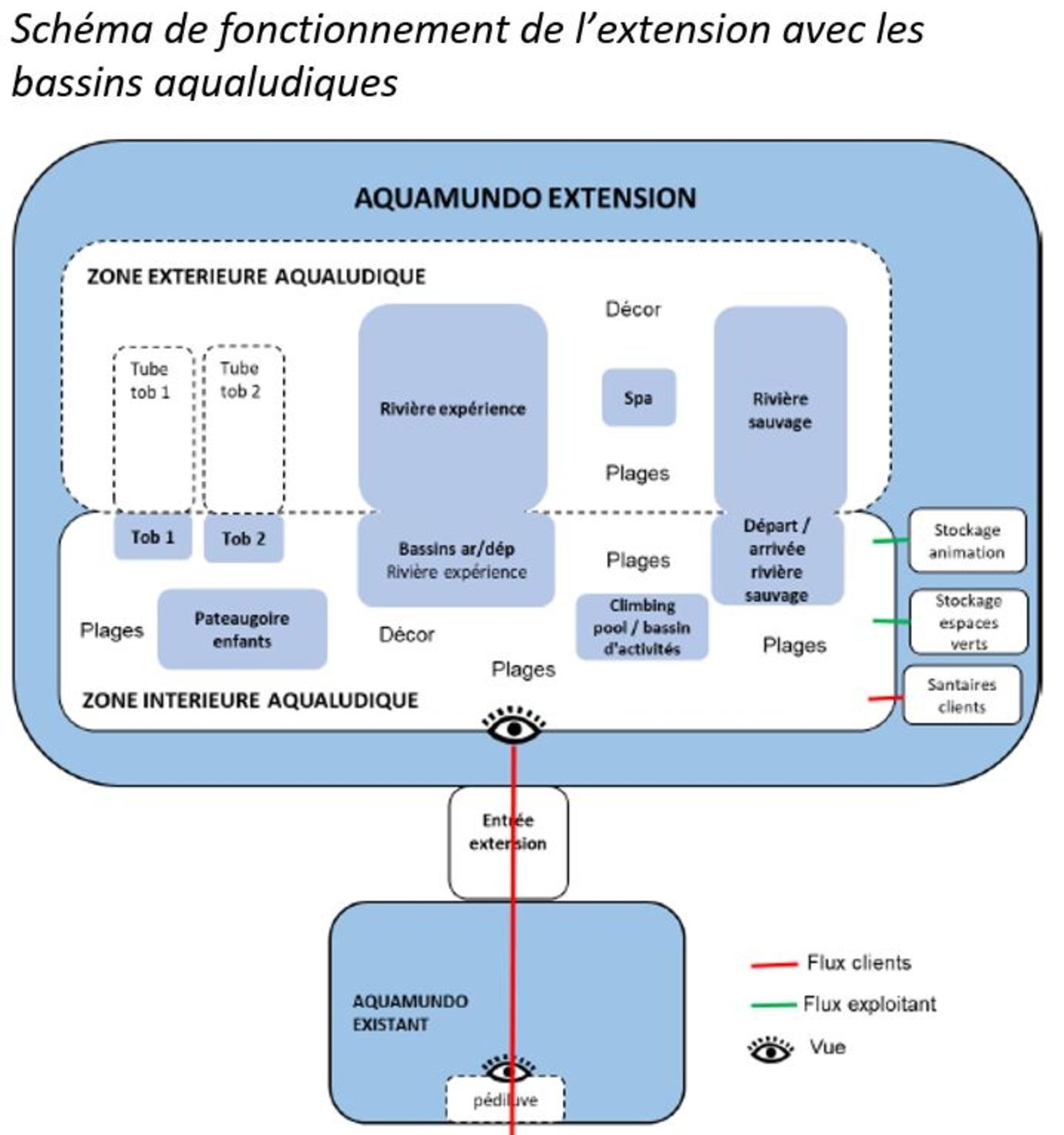 Extension de 2100m² : bassins aqualudique, plages, vestiaires/casiers