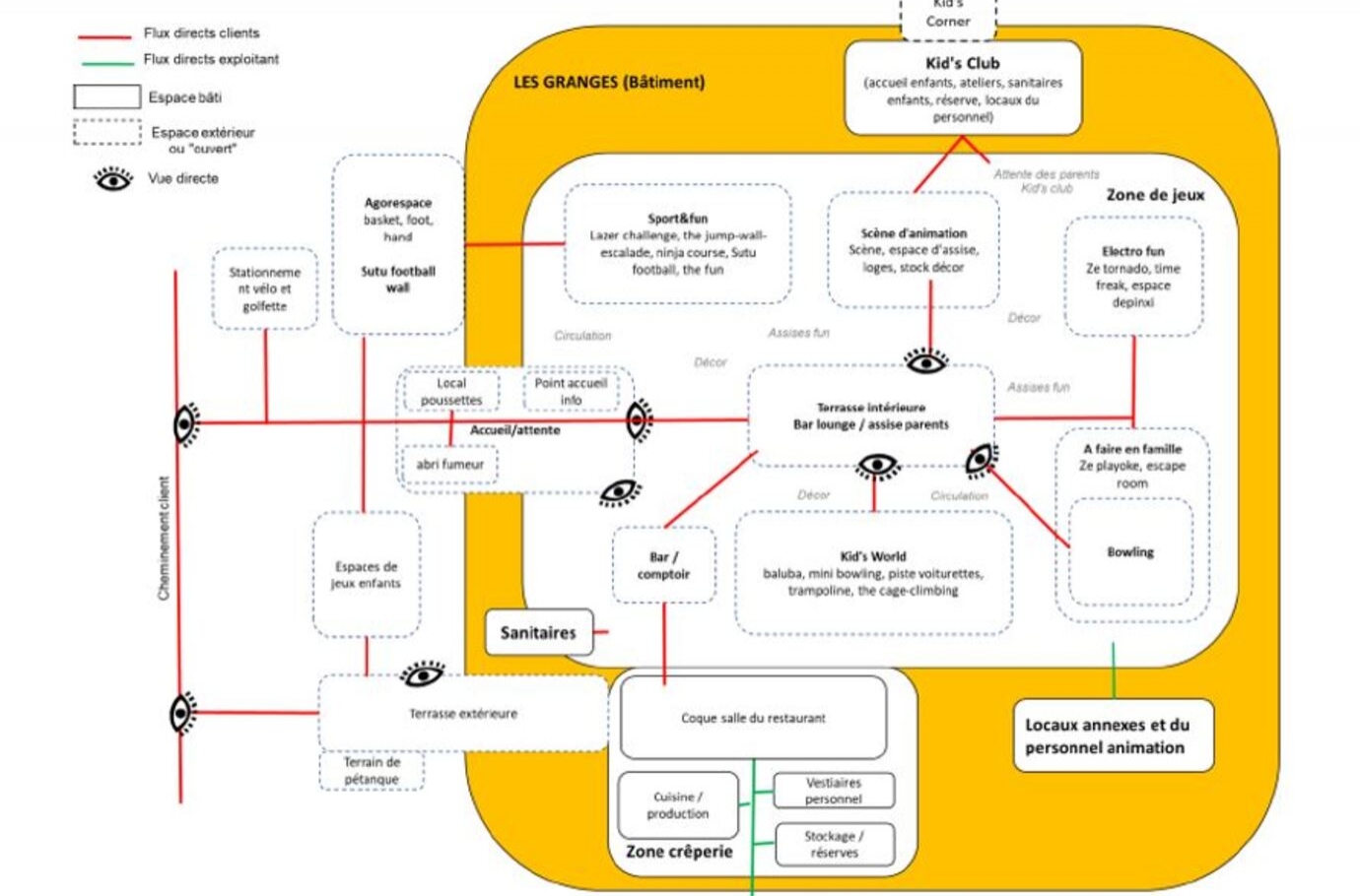 Programme architectural des Granges (jeux intérieurs divers, bowling et restaurant)