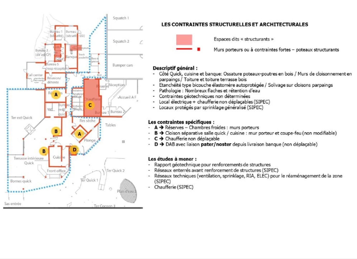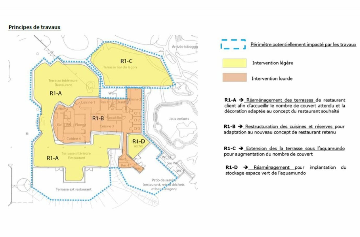 Transformation de tous les restaurants du Dôme, soit 2 400m² de surfaces impactées par les travaux :