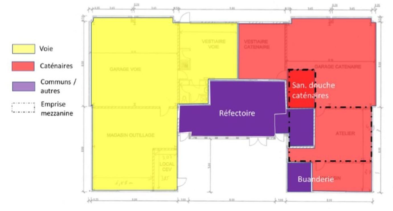 Usages de garages, magasins, ateliers, vestiaires des brigades voie et caténaires, etc